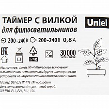 WHITE 2M Таймер с вилкой и разъемом L.N для фито светильника. 220В. 150Вт. Провод 2 метра.